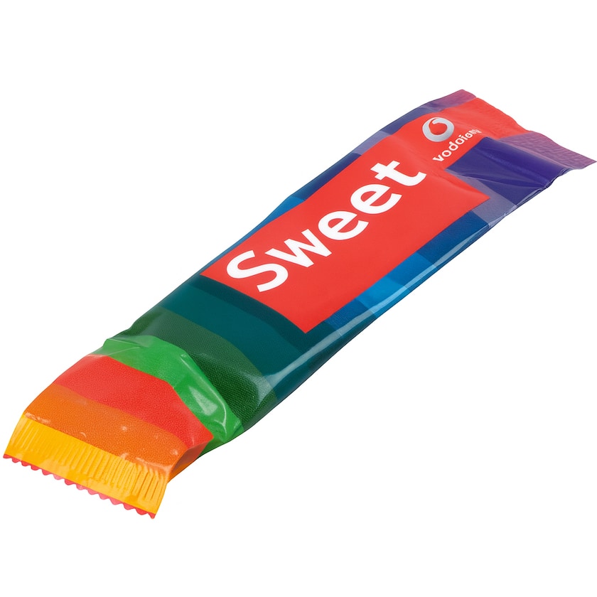 13 grams kjærligheter på pinne av Fairtrade-sertifisert og økologisk fremstilt sukker. Fargen på kjærlighetene er laget av naturlige ingredienser. Hele flowpack-innpakkingen trykkes etter kundens ønsker. Minsteantallet som må bestilles per smak er 6000 stk. En Fairtrade-kjærlighet med masse plass til reklame!