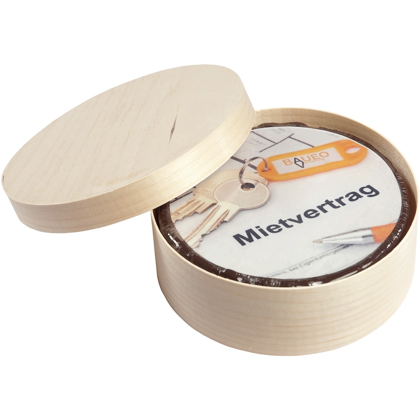 Kake med digitaltrykket overflate som leveres i vakker treboks. Trykket skjer med næringsmiddel-godkjent karamellfarge på et tynt lag sukker. Kaken fås i smakene sjokolade og appelsin. Holdbarheten regnes fra leveransedatoen.