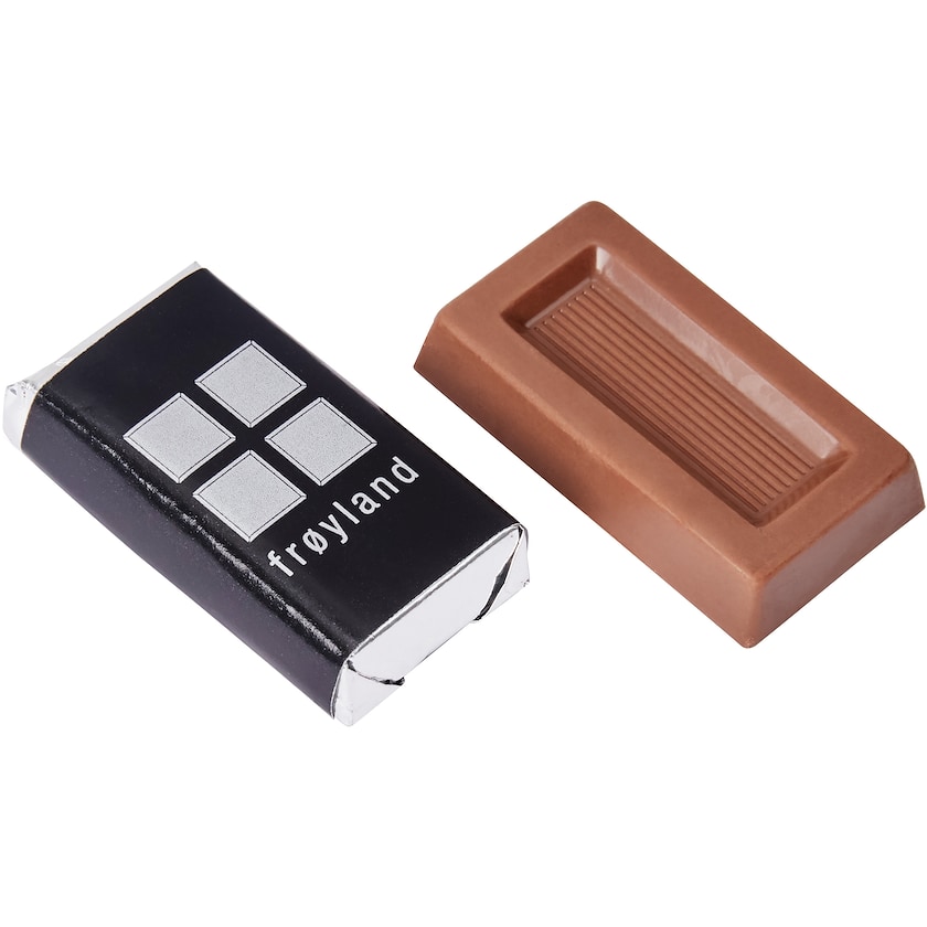 5 grams melkesjokoladebit med digitaltrykk fra bare 500 stk. Sjokoladen er pakket inn i sølvfolie med papiromslag som du designer helt selv. Leveransetiden er relativt kort som gjør at det er valget for deg som vil ha sjokolade raskt og i lite kvanta.