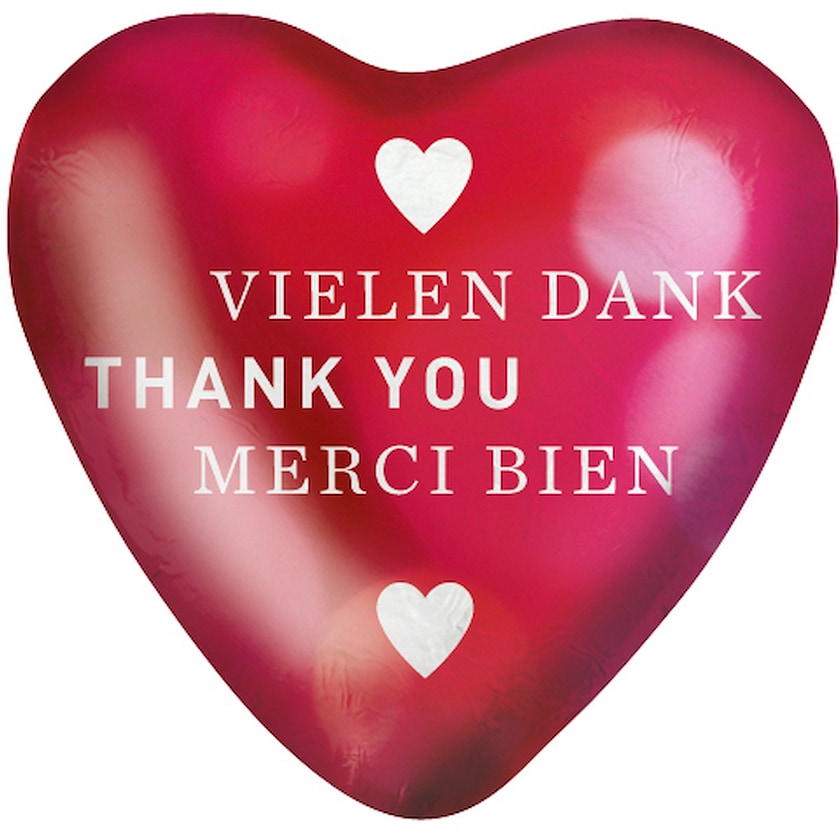 Sjokoladehjerter med fire ulike standardmotiver. En trivelig hilsen til for eksempel hotellgjester eller kunder! Sjokoladehjertet er laget av melkesjokolade med 30% kakao.