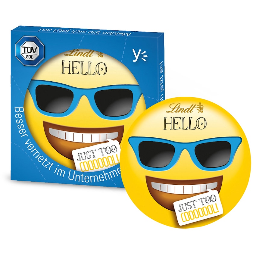 Populære Lindt Hello Emoti Originalinnpakkkingen plasseres i en pappinnpakkingen med eget trykk. Last ned malen og skap din egen innpakking. Lindt Hello Emoti er en sjokolade som fremkaller både latter og smil. Med andre ord en perfekt gave til dine kunder! Leveres med blandede motiver.