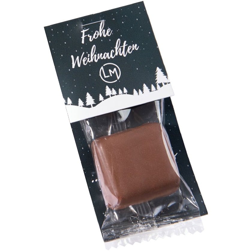 Luksuriøs sjokoladebit til de spesielle begivenhetene. Sjokoladebiten inneholder en herlig blanding av mandel og nougat som er dekket med melkesjokolade. Kortet digitaltrykkes helt etter dine egne ønsker.