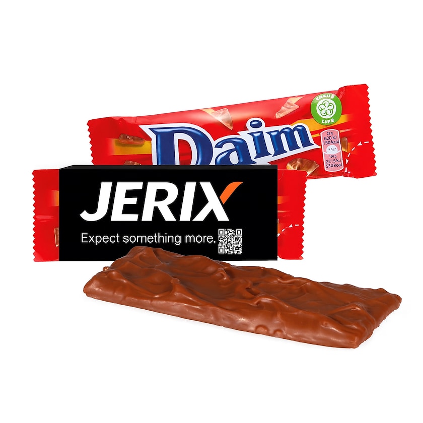 Gjør reklame med Daim! Sjokoladeplate på 28 gram fra Daim som utrustes med en papphylse med ditt trykk.