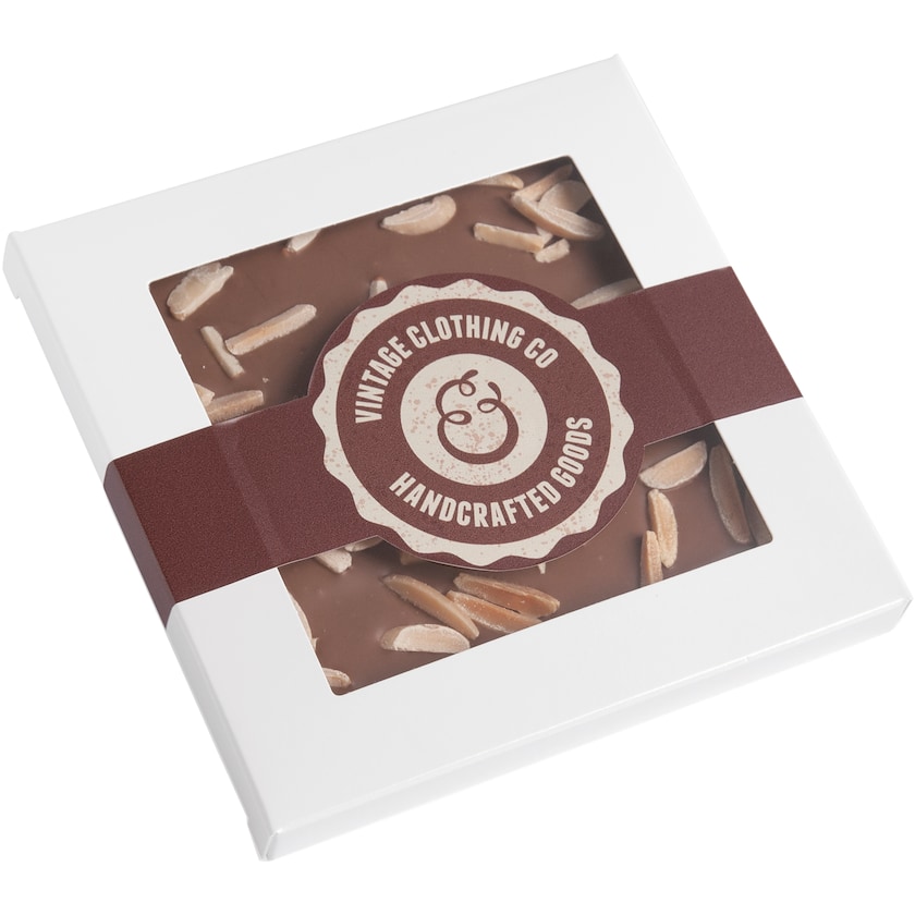 Luksuriøs sjokoladeplate av fineste kvalitet. Valence, er innpakket i en elegant, hvit kartong med vindu. Innpakningen er pyntet med et bånd som trykkes med digitaltrykk etter eget ønske. Velg mellom flere luksuriøse smaker.