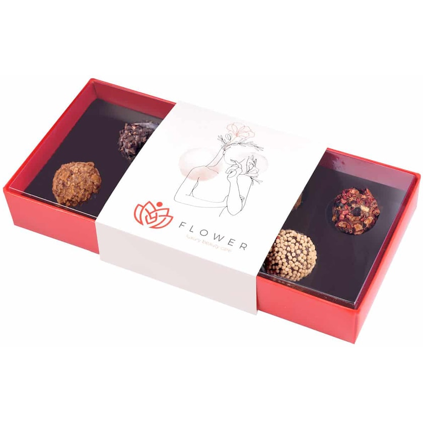 Sjokoladeeske med 8 stk. luksuriøse sjokoladetrøfler. Sjokoladetrøflene kommer i forskjellige smaksvarianter som cherry, calvados og pasjonsfrukt. Det plasseres et papirbånd som trykkes helt etter dine egne ønsker. Du bestemmer også selv trykket på og inni pappesken.