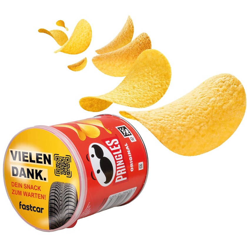 Pringles Original med trykk på lokket. Favoritten til alle chipselskere! Trykket gjøres på et rundt papir som plasseres i lokket.