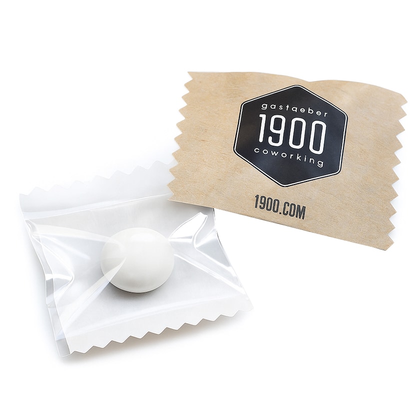 Tyggegummi fra Mentos i stilig flowpack. Velg mellom smakene mint og frukt. Oversiden av forpakningen påføres digitaltrykk etter ditt eget ønske. Baksiden er transparent.