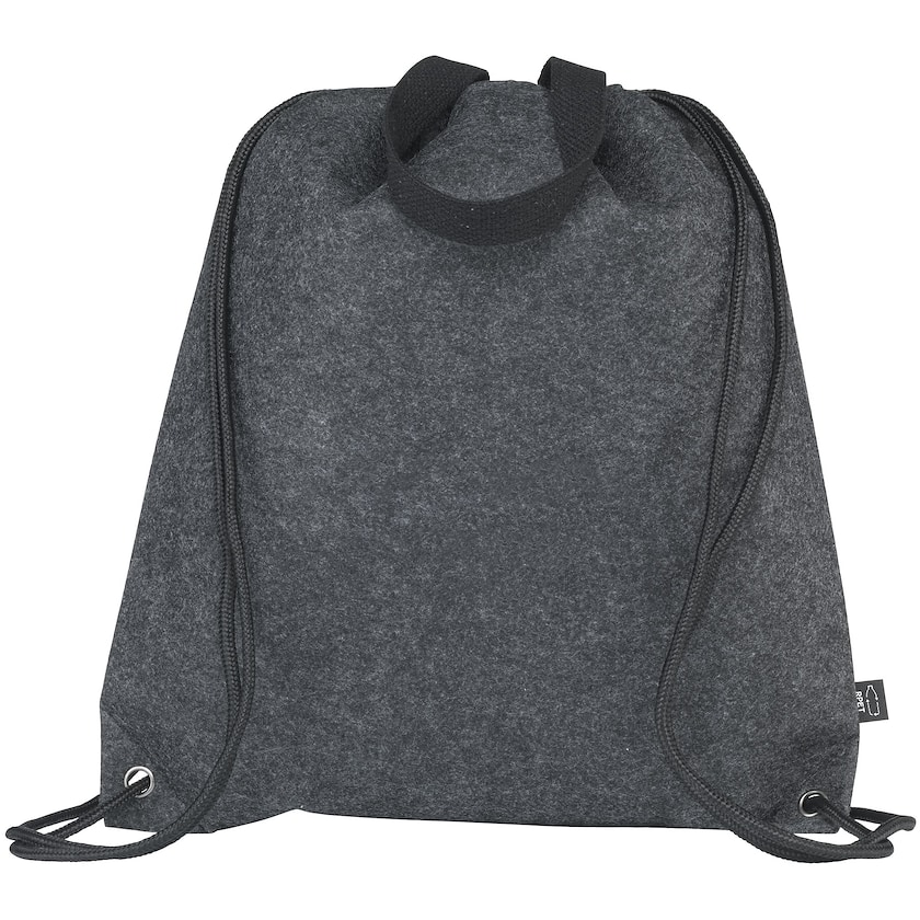 Miljøvennlig gympose av filt. Stoffet er laget av resirkulerte PET-flasker og resirkulerte tekstiler. Kan både bæres på ryggen og i hånden.