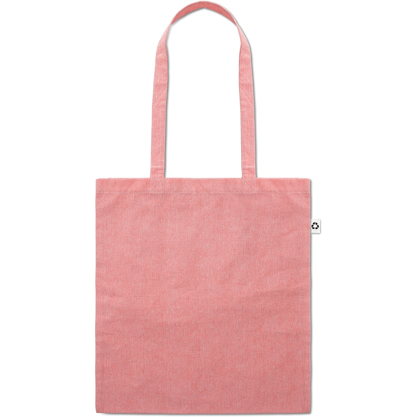 Bomullspose laget av gjenvunnet bomull og gjenvunnet polyester. Bloom har lange håndtak og et unikt, tofarget stoff. Posen er utstyrt med en diskret etikett med gjenvinningsymbol.