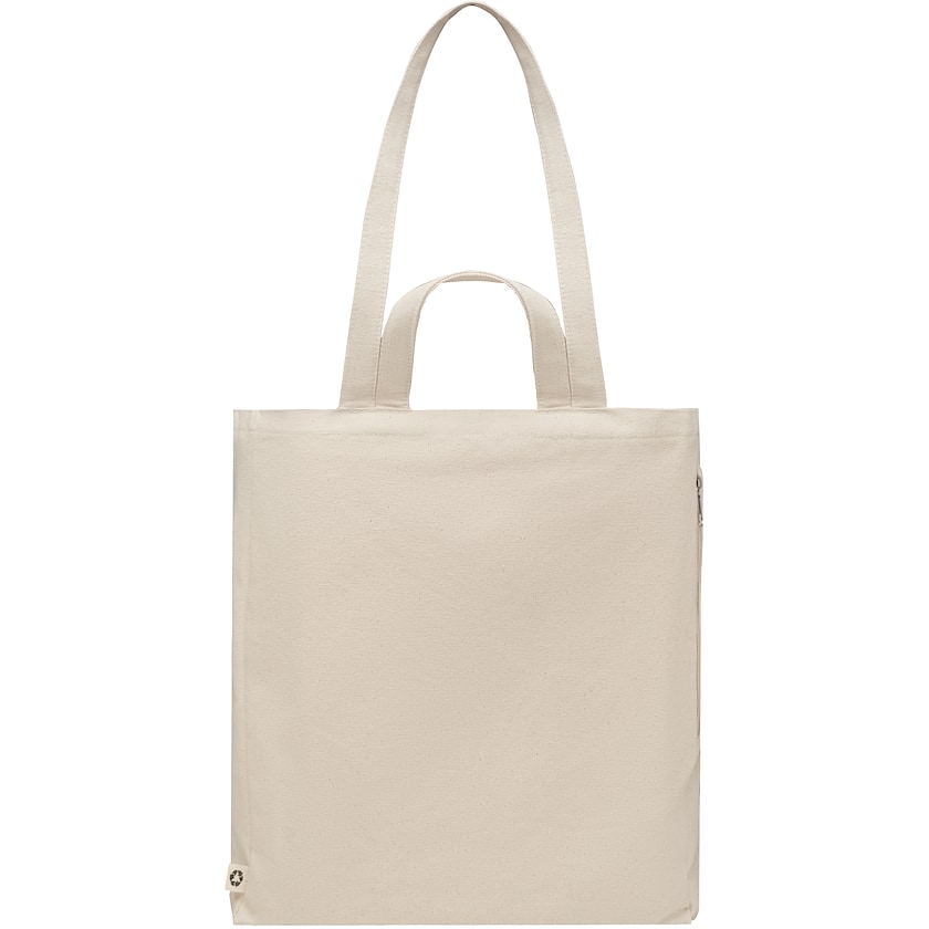 Handlenett av solid bomullsblanding. Brienz er laget av 70% resirkulert bomull og 30% resirkulert polyester. Handlenettet har både lange og korte håndtak. På innsiden er det en oppbevaringslomme med glidelåslukking.