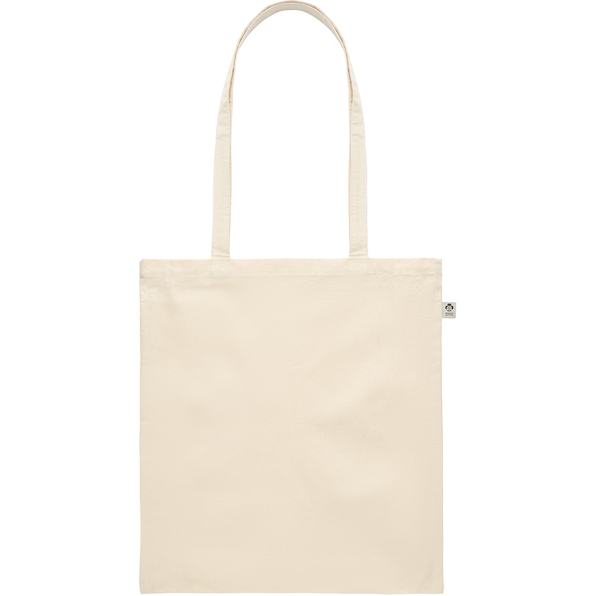 180 grams bomullspose av økologisk bomull. Bomullsposen har lange håndtak som gjør at den er behagelig å bære over skulderen.