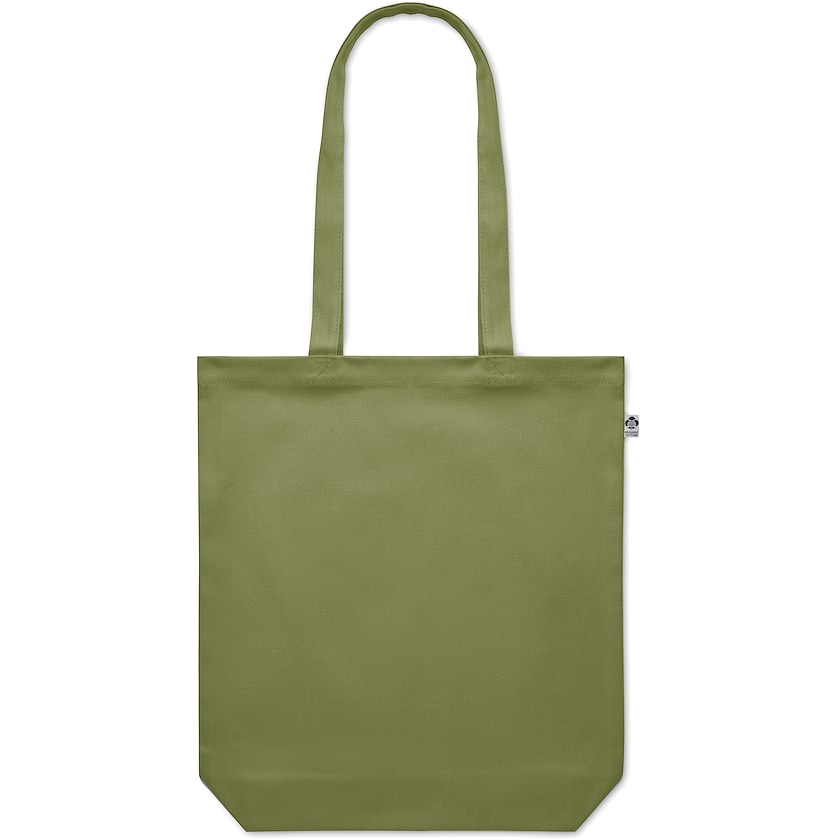 Pose med et 270 grams bomullsstoff av økologisk bomull. Fabius, har lange håndtak og finnes i flere attraktive farger. På den ene siden er det en etikett som viser at den er laget av økologisk bomull.