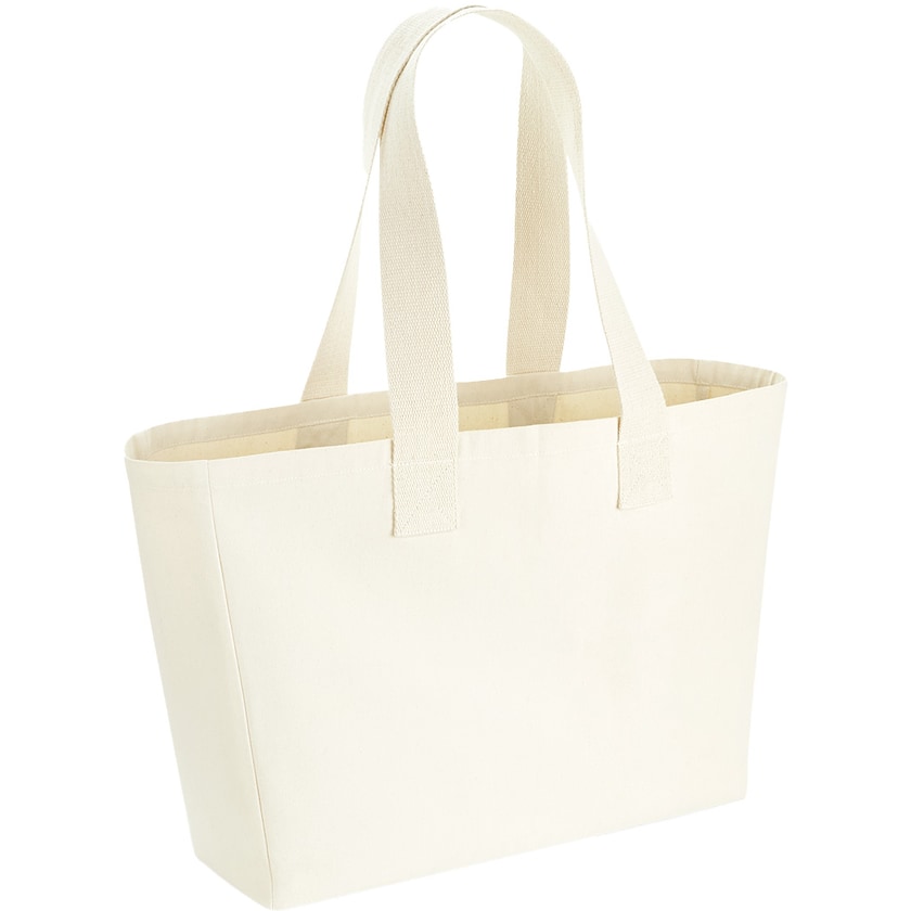 Bomullspose har brede, behagelige bomullshåndtak. Herrin er laget av et kraftig 340 grams bomullsstoff. Kan enten bæres i hånden eller over skulderen.