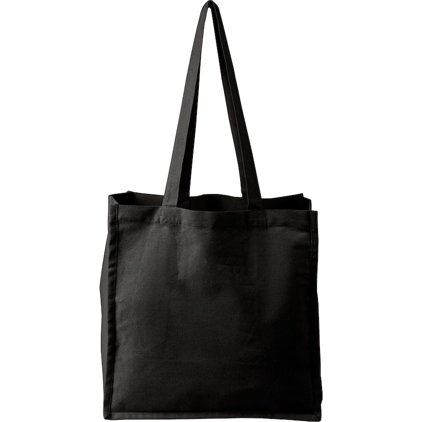 Bomullspose med bred bunn og lange håndtak. Det kraftige stoffet og den brede bunnen gjør posen perfekt til shopping. Det er bare mulig med 1-fargetrykk.