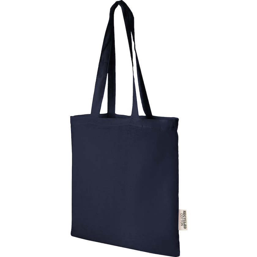 140 grams bomullspose av GRS-sertifisert, resirkulert bomull. Handlenettet har 30 cm lange håndtak som gjør den lett å bære.