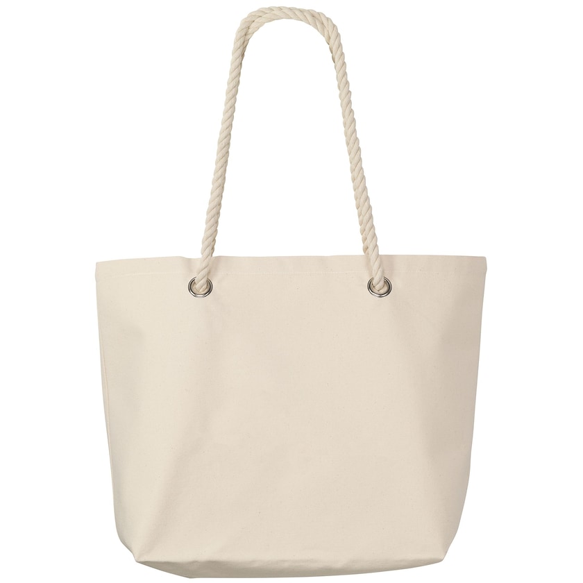 Påkostet bomullspose med håndtak av tau. Innvendig finnes en lomme med glidelås. Perfekt til shoppingturen eller stranden. Det er bare mulig med 1-fargetrykk.