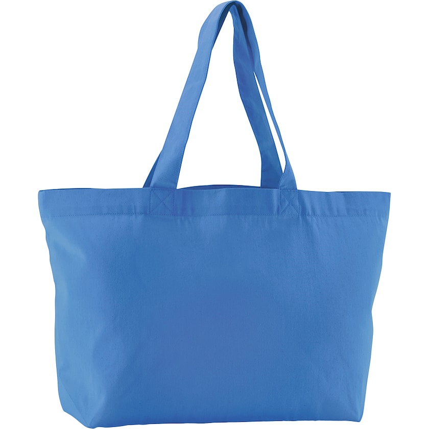 Bred og stor bomullspose av økologisk bomull. Stoffet veier 230 gram/m². Kan både bæres i hånden og over skulderen.