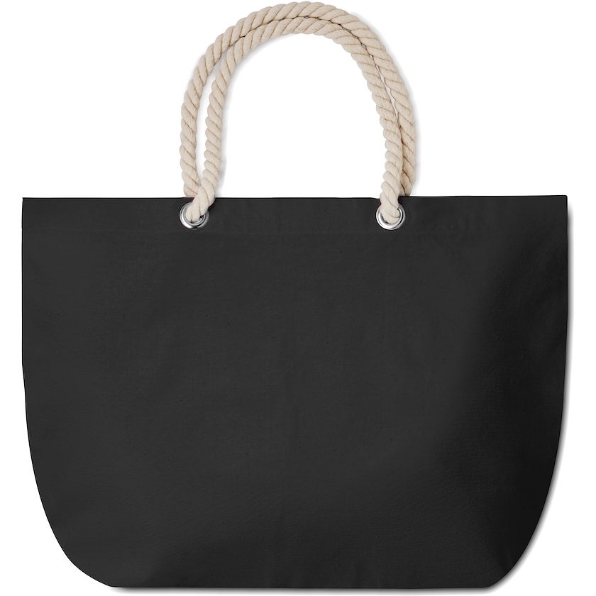 Real bomullspose med pent håndtak. Posen har en bred bunn som gjør den et godt valg til handling.