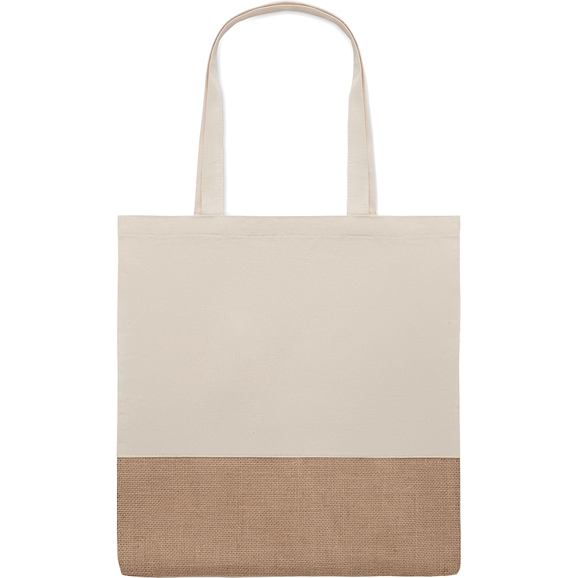 Handlenett av bomull og den nederste delen av jute. Handlenettet har lange håndtak. Et handlenett av naturlige materialer med mye sjarm.