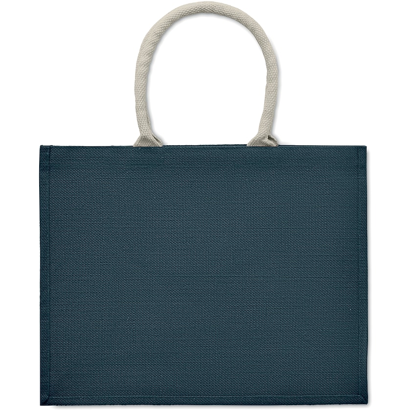 Laminert jutepose med håndtak av bomull. Passer like bra på stranden som når du skal ut å handle. Takket være lamineringen blir posen med slitesterk.