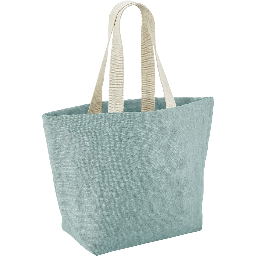 Jutepose av mykt jutestoff. Kan bæres i hånden er over skulderen. Innvendig er det en oppbevaringslomme til mindre gjenstander.