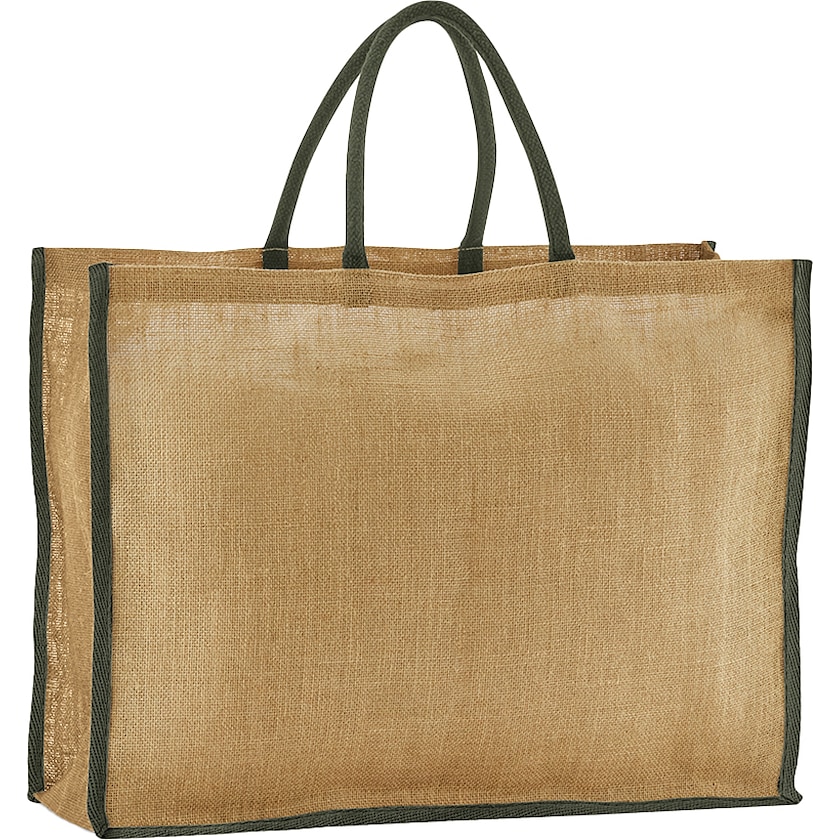 Stor jutepose med korte bomullshåndtak. Jutestoffet er ulaminert, noe som gjør posen et naturlig og veldig vakkert utseende.