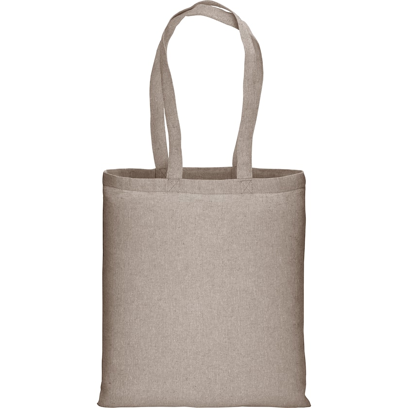 Handlenett med et melert 150 grams stoff av resirkulert bomull. Molly har lange håndtak. En både miljøvennlig og unik bomullspose.