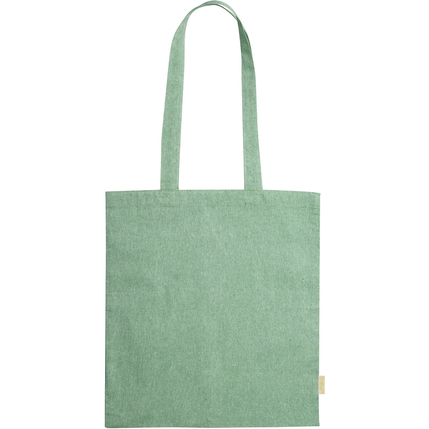 Bomullspose av 100% økologisk bomull. Posen har lange håndtak så du lett kan bære den over skulderen. På posens side er det en etikett som viser at den er laget av økologisk bomull.