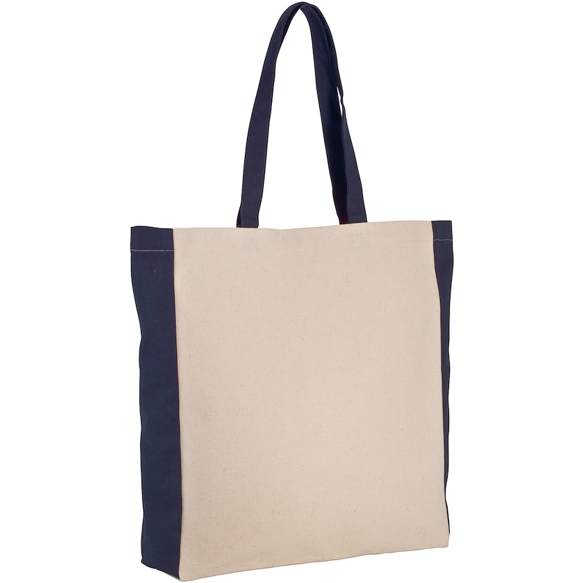 Bomullspose med kontrastfargede kortsider og håndtak. Posen er laget av et kraftig 310 grams stoff av 100% bomull. En unik bomullspose i høy kvalitet.