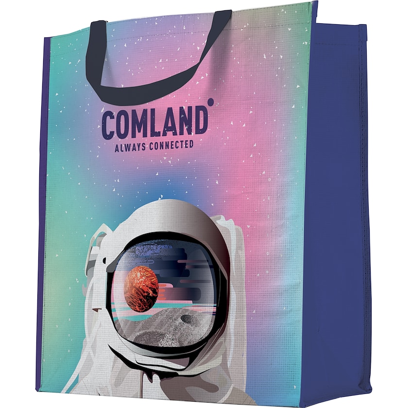 Laminert handlenett med trykk over hele stoffet. Stoffet er av typen PP-woven og er laminert for å gi bedre styrke. Stoffet er veldig kraftig og nesten umulig å slite ut ved normalt brukt. Perfekt til å bære tunge gjenstander. Minsteantall er 1000 stk.