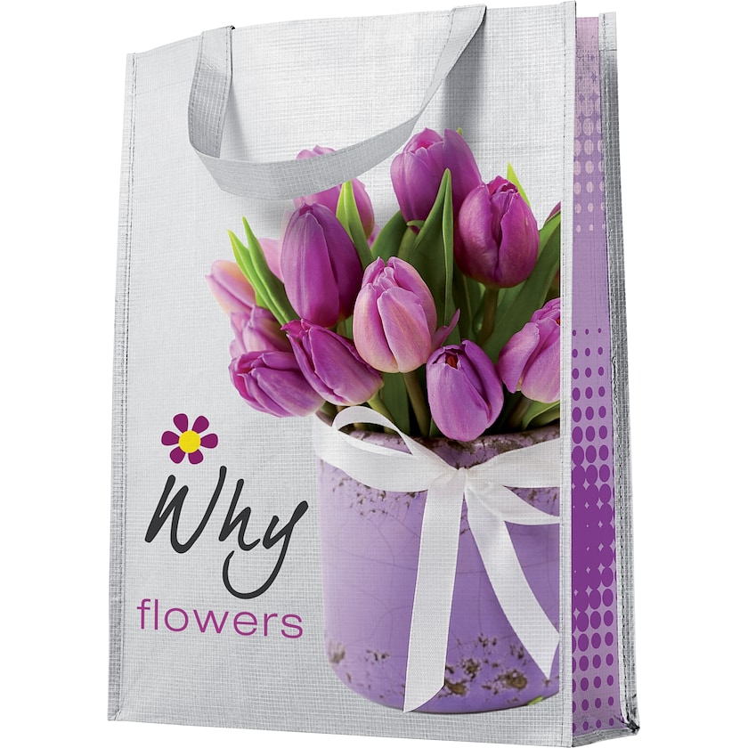 Solid handlenett med laminert stoff. Handlenettet produseres på bestilling, noe som gjør at trykket kan plasseres over hele overflaten og helt ut i kantene. Stoffet er av typen PP-woven, og er laminert for å gi enda bedre styrke. Stoffet er ekstremt kraftig og i utgangspunktet umulig å slite ut ved normalt bruk. Minste bestillingsantall er 1000 stk.
