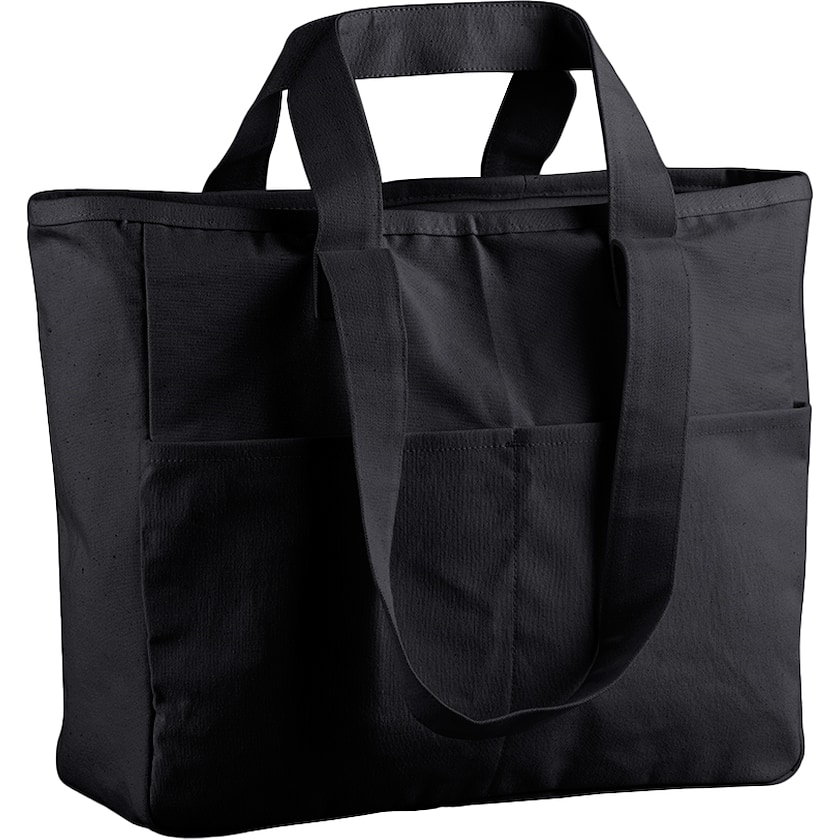 Strandveske av kraftig bomullskanvas. Hovedrommet er utstyrt med glidelås. På forsiden er det to mindre lommer. Stoffet veier hele 475 gram og er av høy kvalitet.