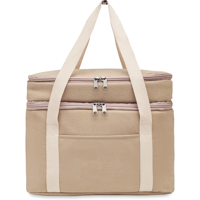 Kjølebag av vasket kanvasstoff med bomullsremmer. Granmore har to oppbevaringsrom og en lomme på forsiden.