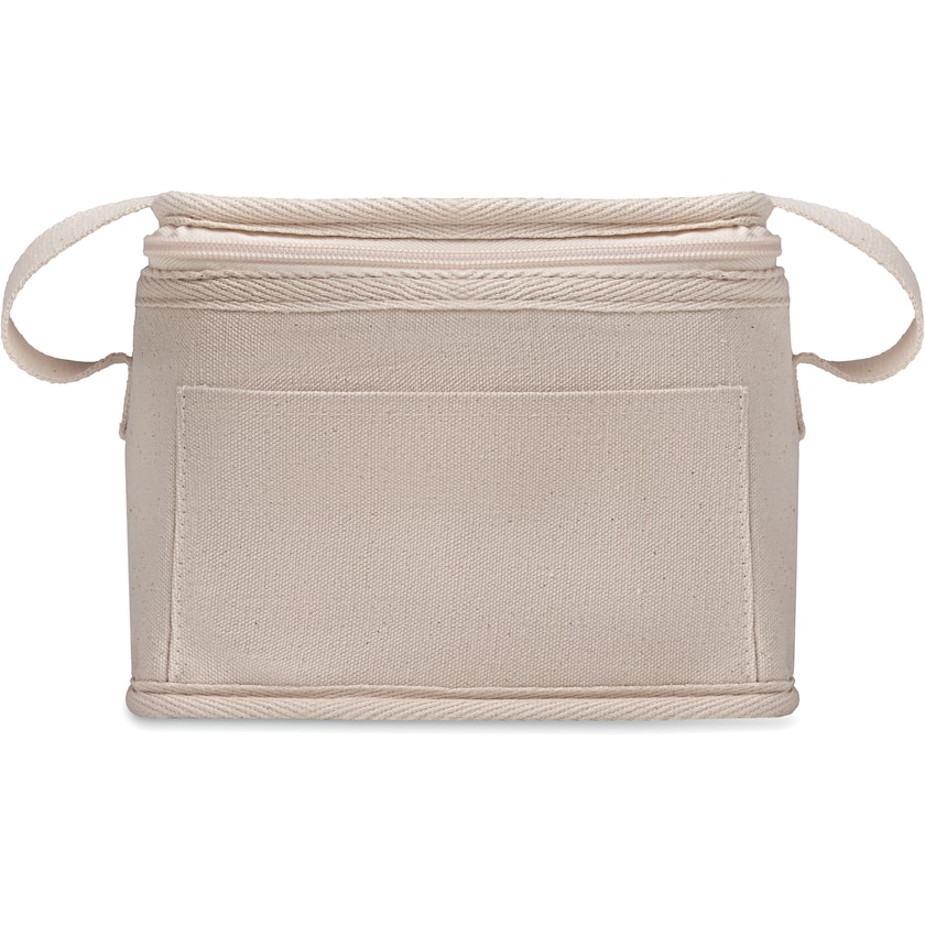 Kjølebag av et kraftig, naturfarget bomullsstoff. På forsiden er det en liten oppbevaringslomme. Kjølebagen kan bæres i hånden.