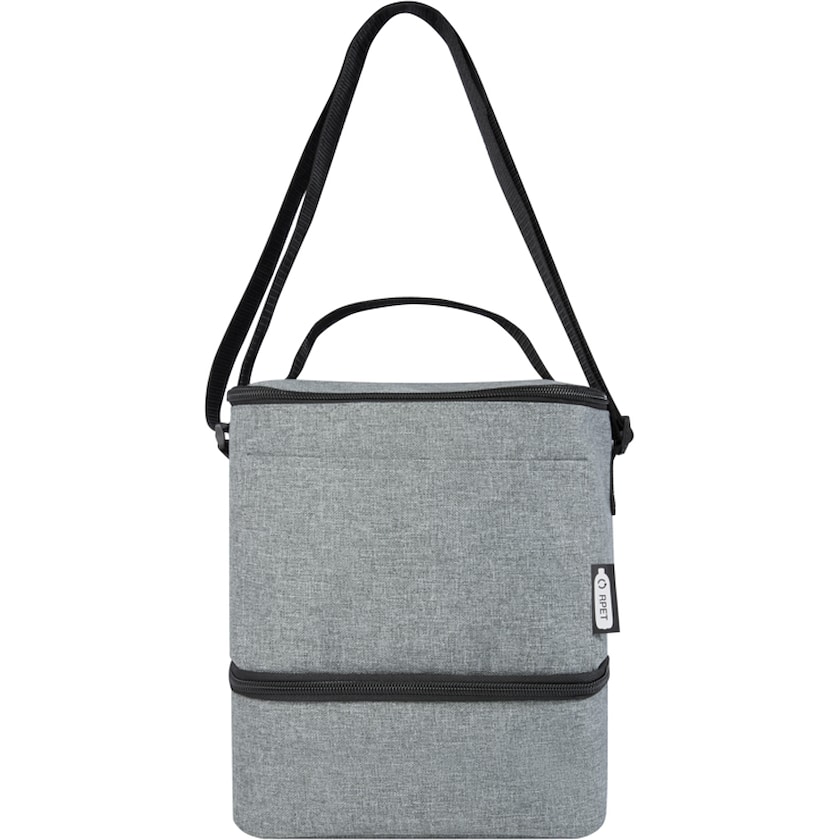 Romslig kjølebag av resirkulert materiale. Lencer er laget av resirkulerte PET-flasker. Kjølebagen har to separate oppbevaringsrom.