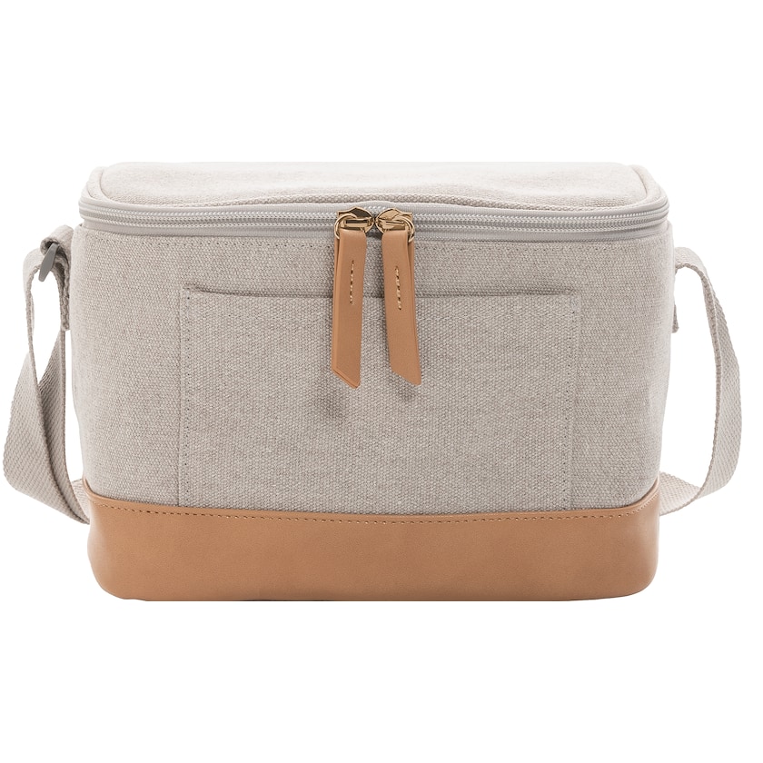 Liten kjølebag av miljøvennlig materiale. På forsiden er det en liten lomme til mindre tilbehør. Bagen har plass til det viktigste til den lille pikniken. Kjølebagen er laget av 40% resirkulert polyester og 60% resirkulert bomull.