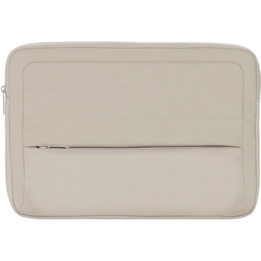 Stilig laptopfutteral av resirkulert polyester. Har plass til en bærbar PC på 15,6''. På forsiden er den lomme med glidelåslukking.