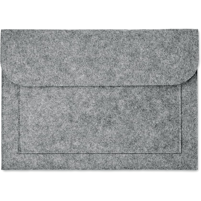 Moderne laptopfutteral av RPET-filt. Laptopfutteralet er 2 mm tykt og rommer de fleste laptoper opptil 15 tommer. Foran er det en oppbevaringslomme.
