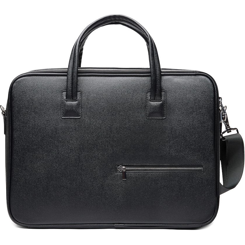 Stilig PC-veske av vakkert kunstskinn. På forsiden er det en lomme med glidelåslukking og på baksiden er et festebånd til trillekoffert. Utstyrt med en avtakbar skulderrem. Laget av 36% resirkulert polyester og 64 % vanlig polyester.