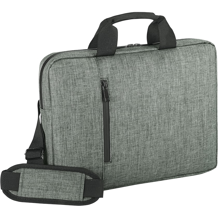 PC-veske i et praktisk format. På innsiden er det et polstret rom til en 14'' bærbar PC. På forsiden er det en oppbevaringslomme til mindre tilbehør.