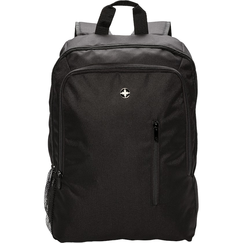 Stilig PC-ryggsekk i aerodynamisk design fra Swiss Peak. Swiss Peak Typhoon har et vattert rom som har plass til de fleste laptoper opp til 17 tommer. Videre har ryggsekken et flertall smarte rom og lommer for mindre tilbehør. På siden finnes et spesielt rom for vannflaske. Ryggsekken er helt fri for PVC.