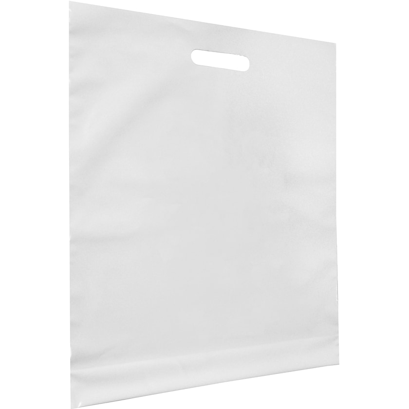 Stor og fin hvit plastpose som kan fås med eget trykk fra kun 300 stk.