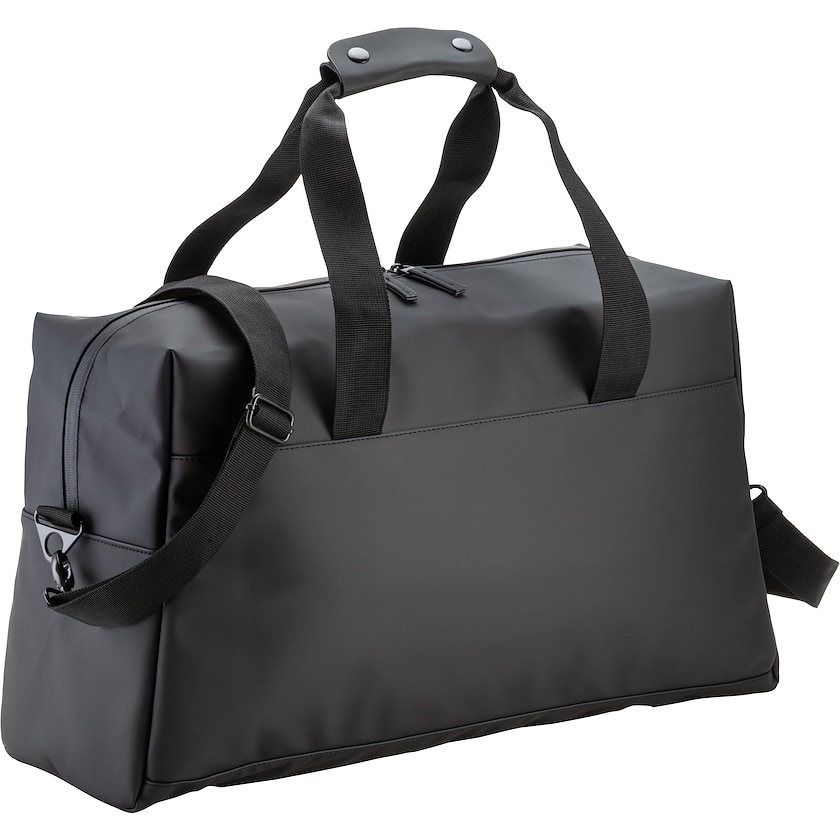 Vanntett weekendveske med trykk. Glidelåsen er forsterket for å ikke slippe inn vann. Innvendig er det en mindre lomme med glidelås. Det er bare mulig med 1-fargetrykk.