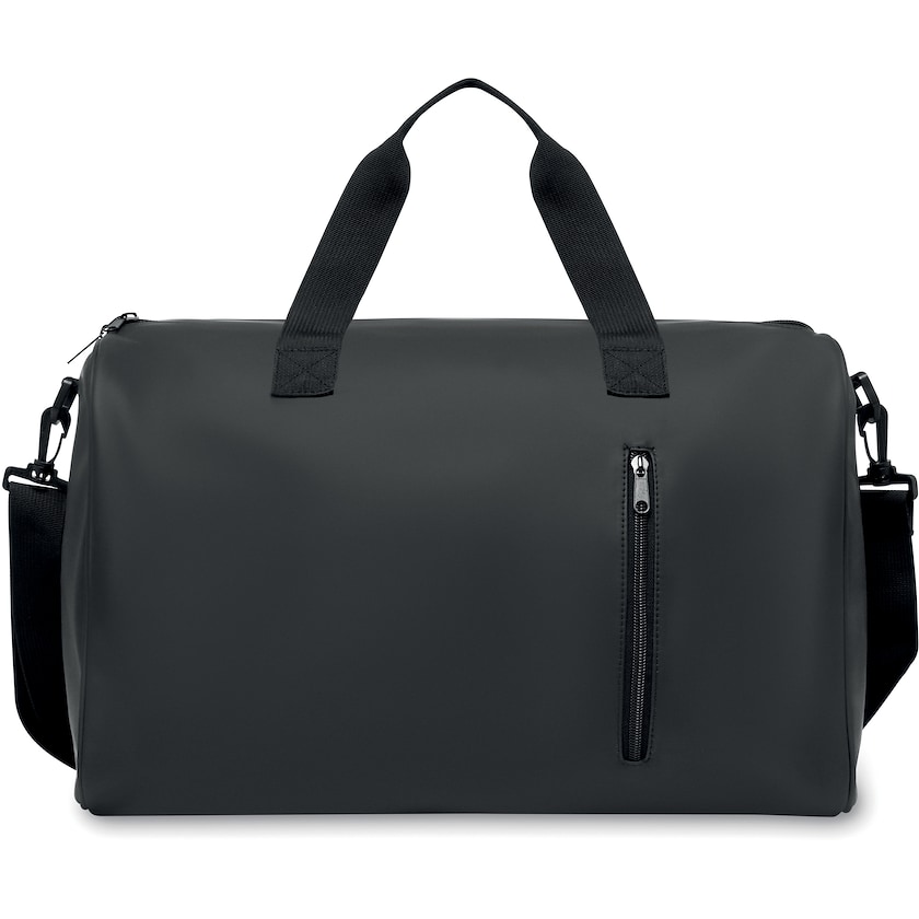 Weekendbag med lomme på forsiden. Fôret er laget av resirkulert materiale. Skulderremmen er justerbar og avtakbar.