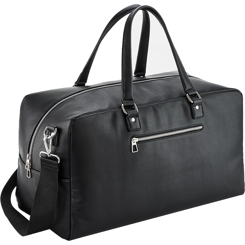 Miljøvennlig weekendbag med stilig stoff av kunstskinn. Fôret er laget av resirkulert polyester og ytterstoffet av polyuretan. På forsiden er det en lomme med glidelåslukking og innvendig er det to lommer til oppbevaring av mindre tilbehør.