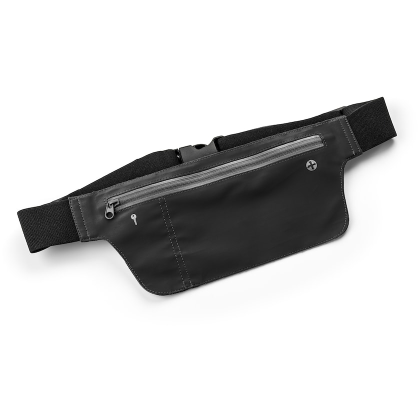Sporty rumpetaske med trykk. Custer, har en oppbevaringslomme med glidelåslukking og uttak til hodetelefoner.