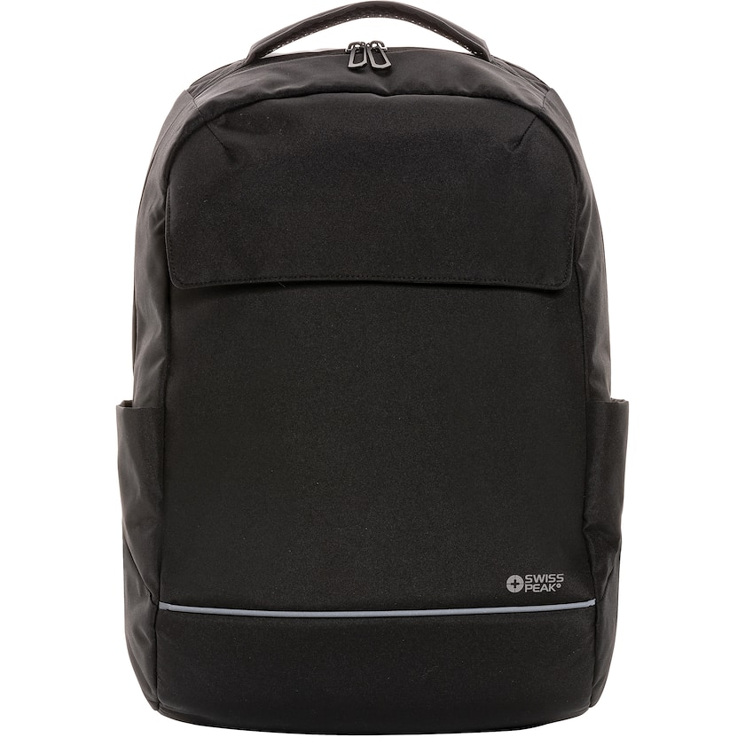 Stilig PC-ryggsekk fra Swiss Peak. Innvendig er det et polstret rom til en 15,6'' laptop. Ryggsekken er laget av RPET (resirkulerte PET-flasker) og dermed et godt miljøvalg.
