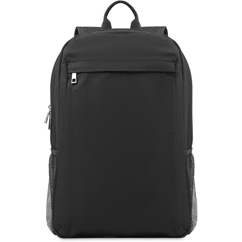 PC-ryggsekk av kraftig kanvasstoff. Baksiden og skulderremmer er behagelig polstret. På baksiden er det et bånd til trillekoffert og på forsiden er det en lomme til mindre tilbehør.