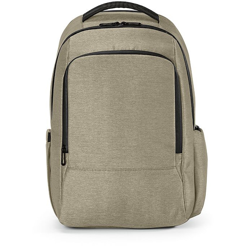 Førsteklasses PC-ryggsekk med vanntett stoff. Det er et polstret rom på innsiden til en 17'' bærbar PC. Stoffet er laget av resirkulert nylon. På forsiden er det en lomme med glidelåslukking til mindre tilbehør.