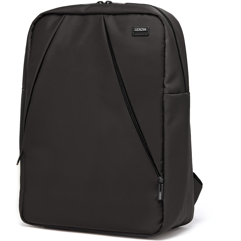 PC-ryggsekk i slankt format fra franske Lexon. Ryggsekken har høy kvalitet og en rekke oppbevaringslommer. På innsiden er det et polstret rom til en 14'' bærbar PC. Det er et håndtak av aluminium på oversiden.